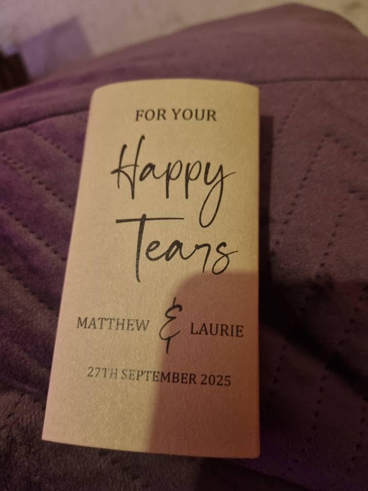Of course these tissue packs don't have to be tailored specifically to a wedding but could be adapted to suit many other occasions, please just let us know your requirements. Many more font and card colours are available too so if you have a query please do contact us.